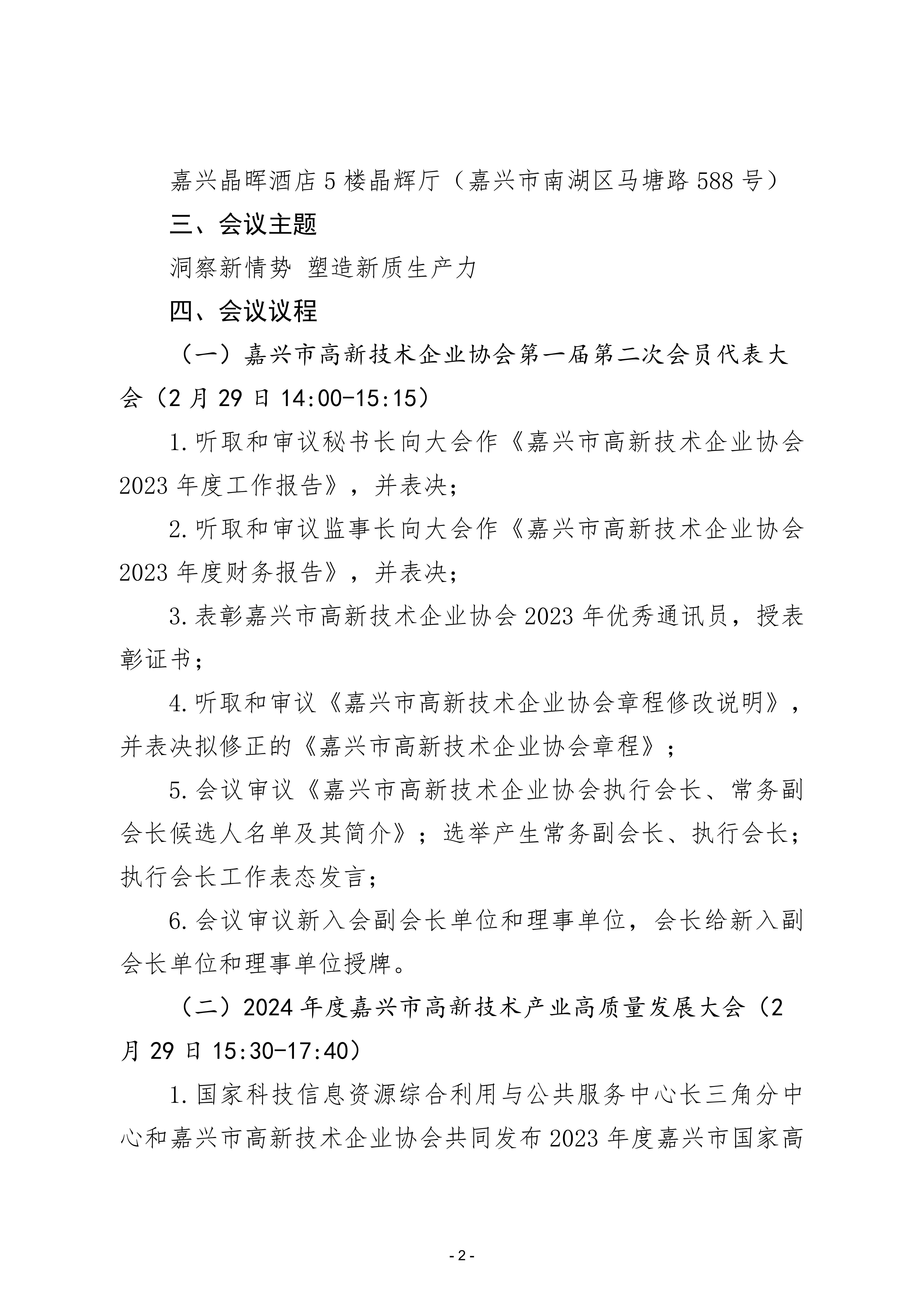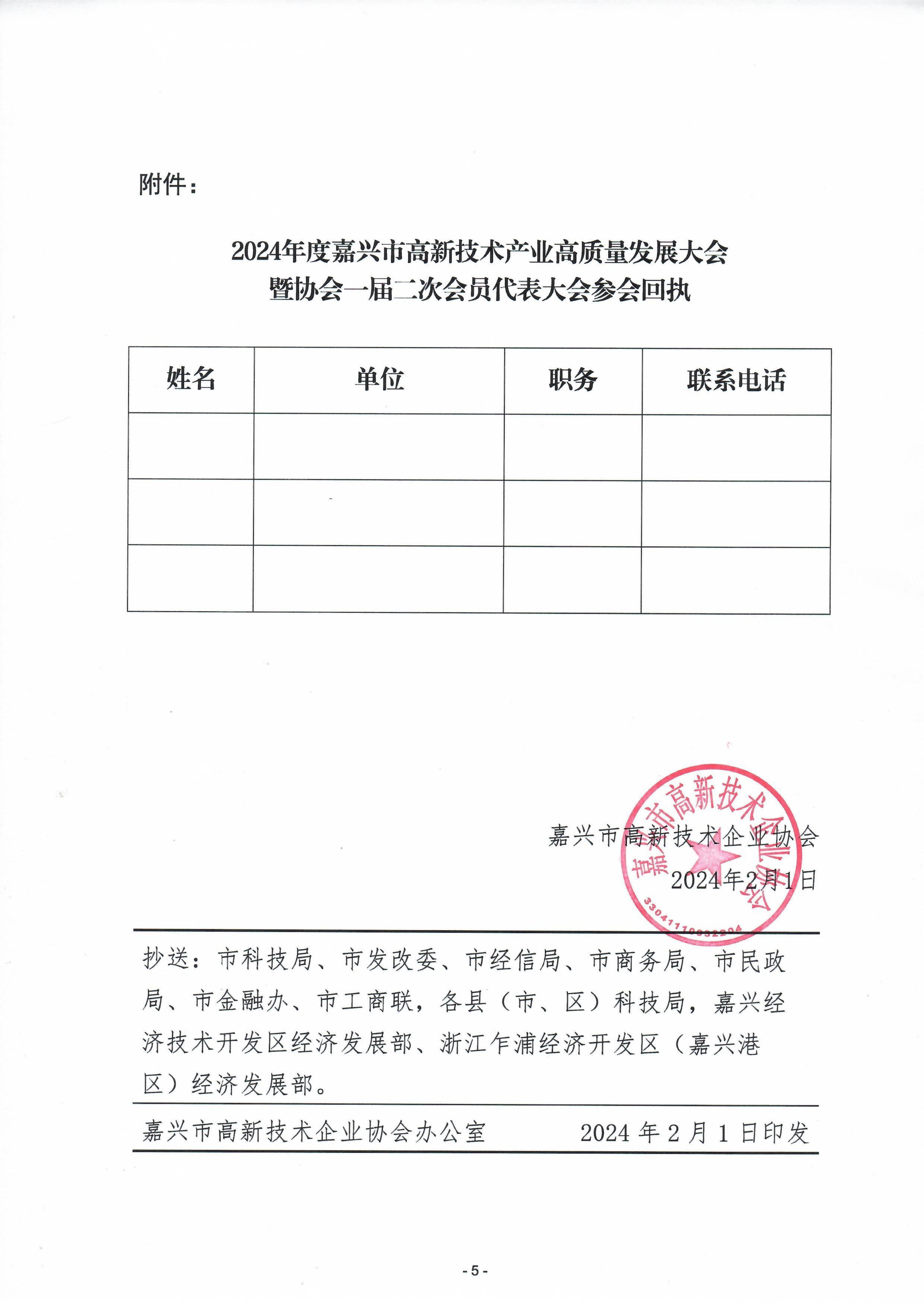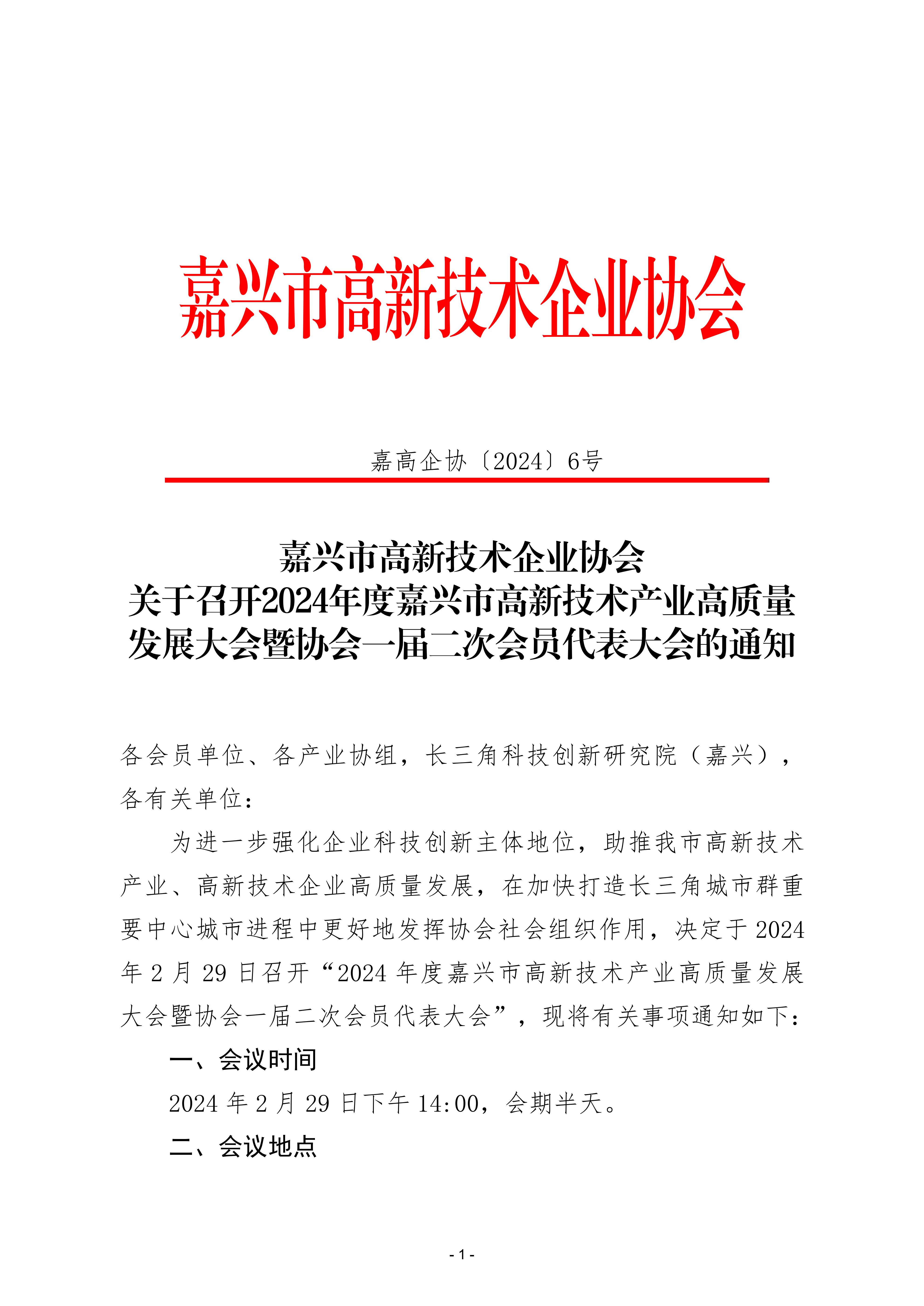 嘉兴市高新技术企业协会关于召开2024年度嘉兴市高新技术产业高质量发展大会暨协会一届二次会员代表大会的预通知