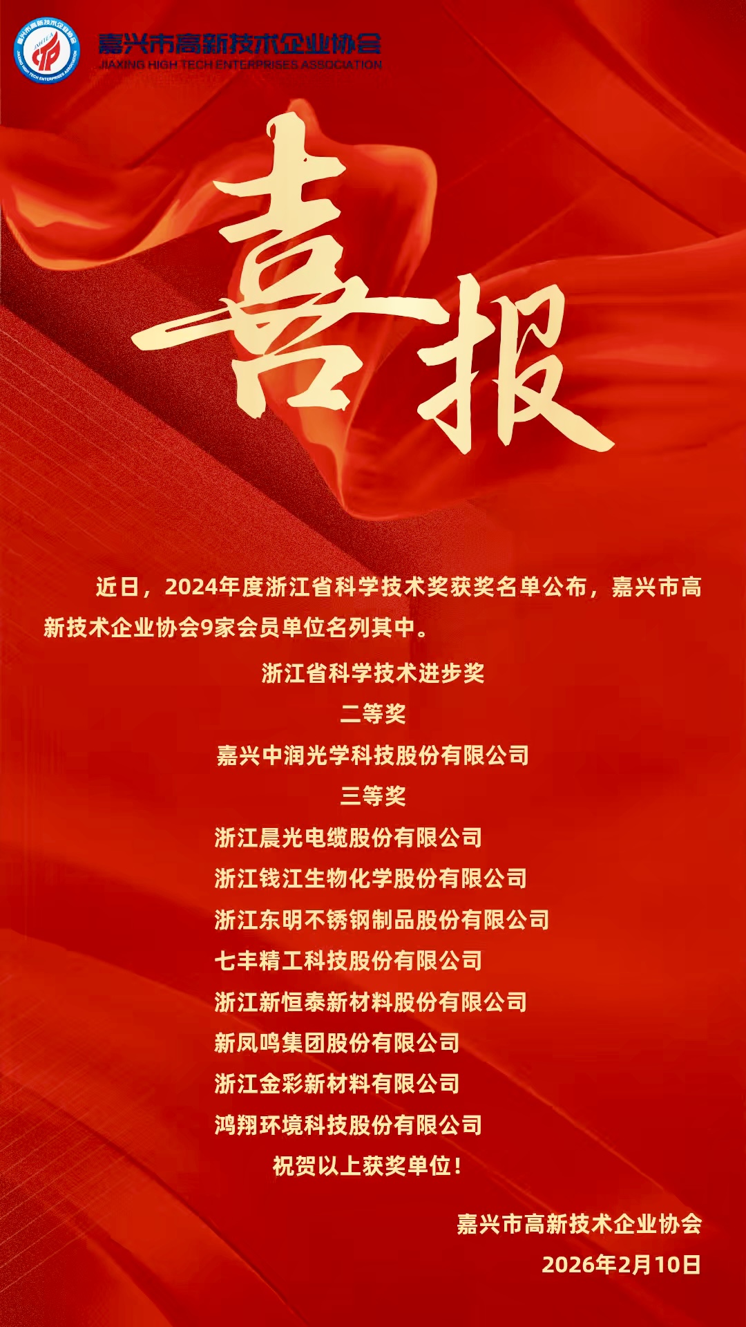 我会9家会员单位荣获浙江省科学技术进步奖