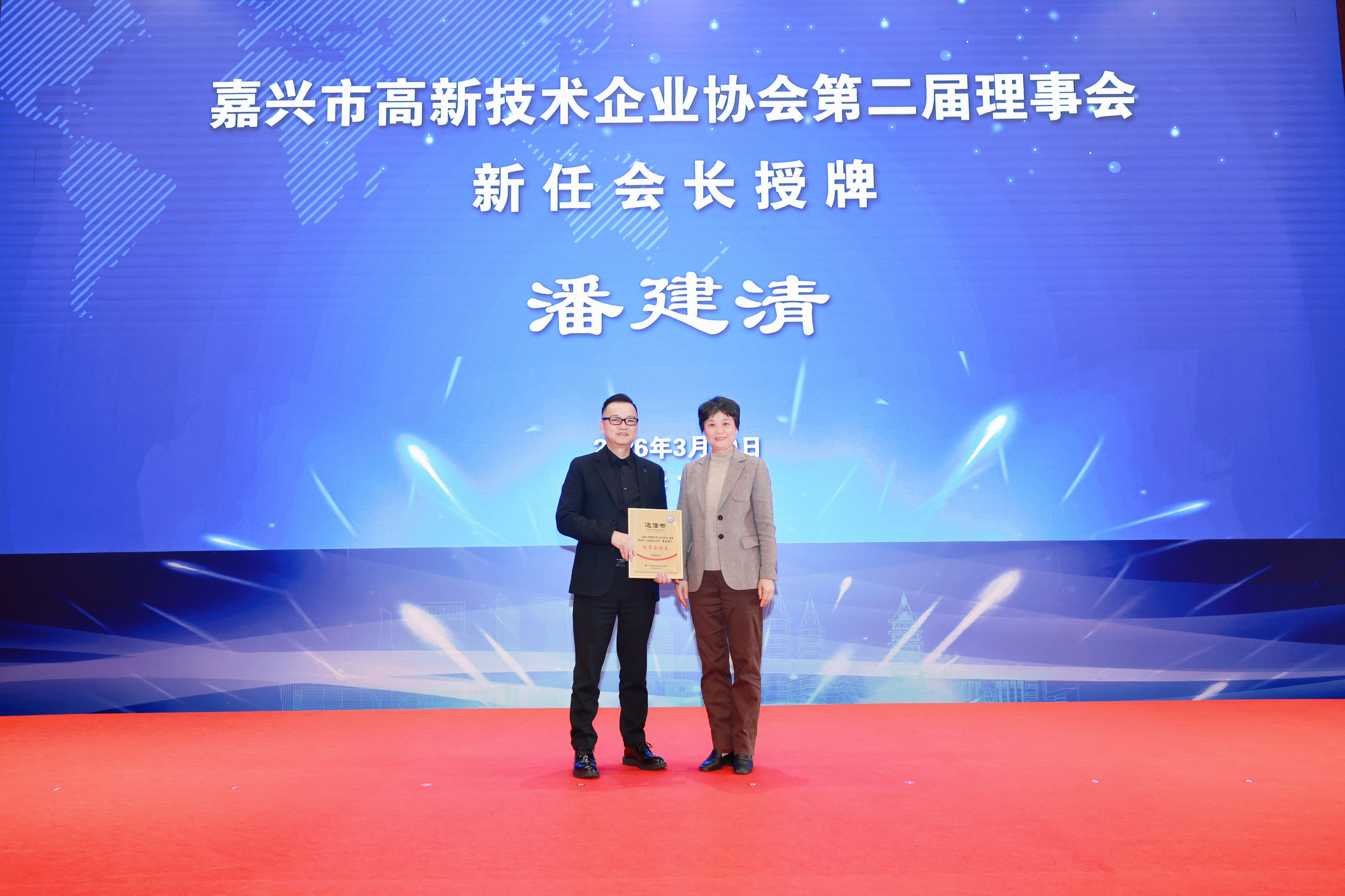 潘建清会长为新任副会长单位代表授牌,见证责任的传递与使命的传承。